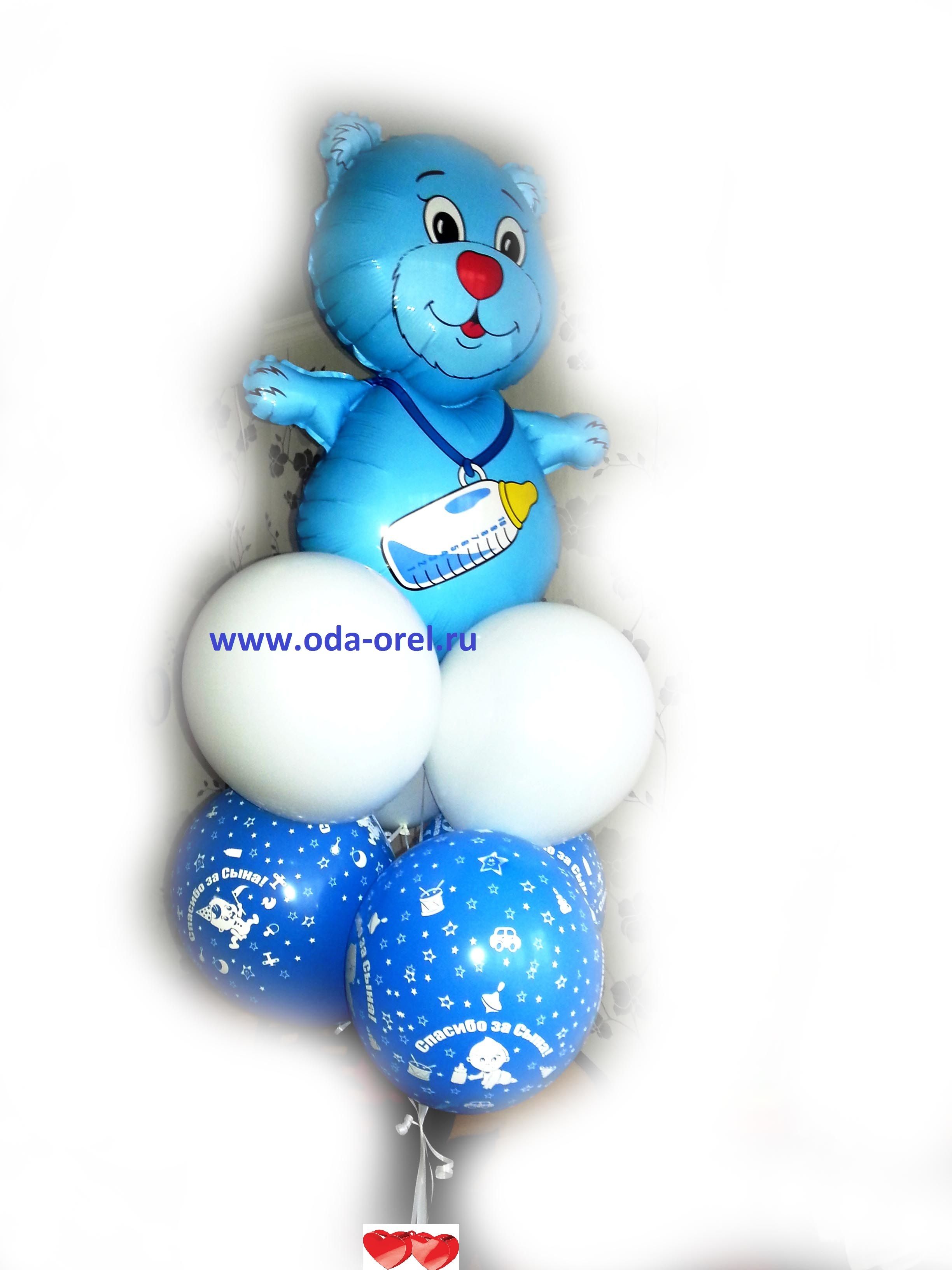 Состав: шар Мишка (Испания) + 3 шара премиум 33 см белых+3 шара тематических (спасибо за сына, ура мальчик)